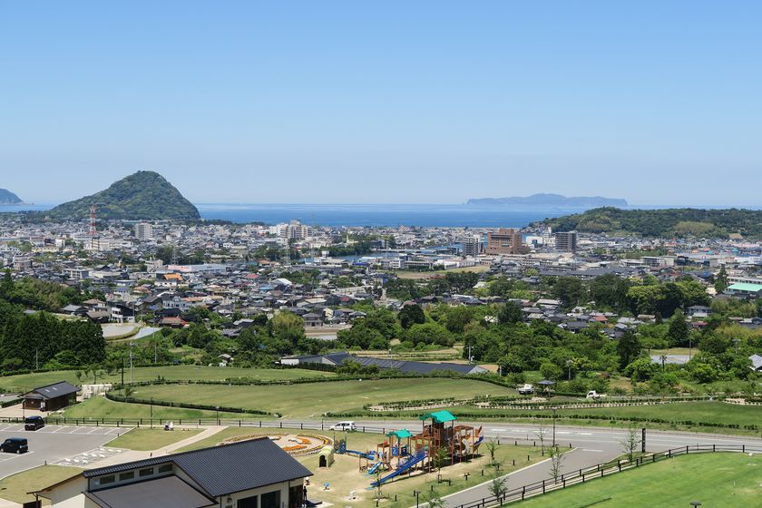 A historical site on a hill overlooking the city of Hagi
