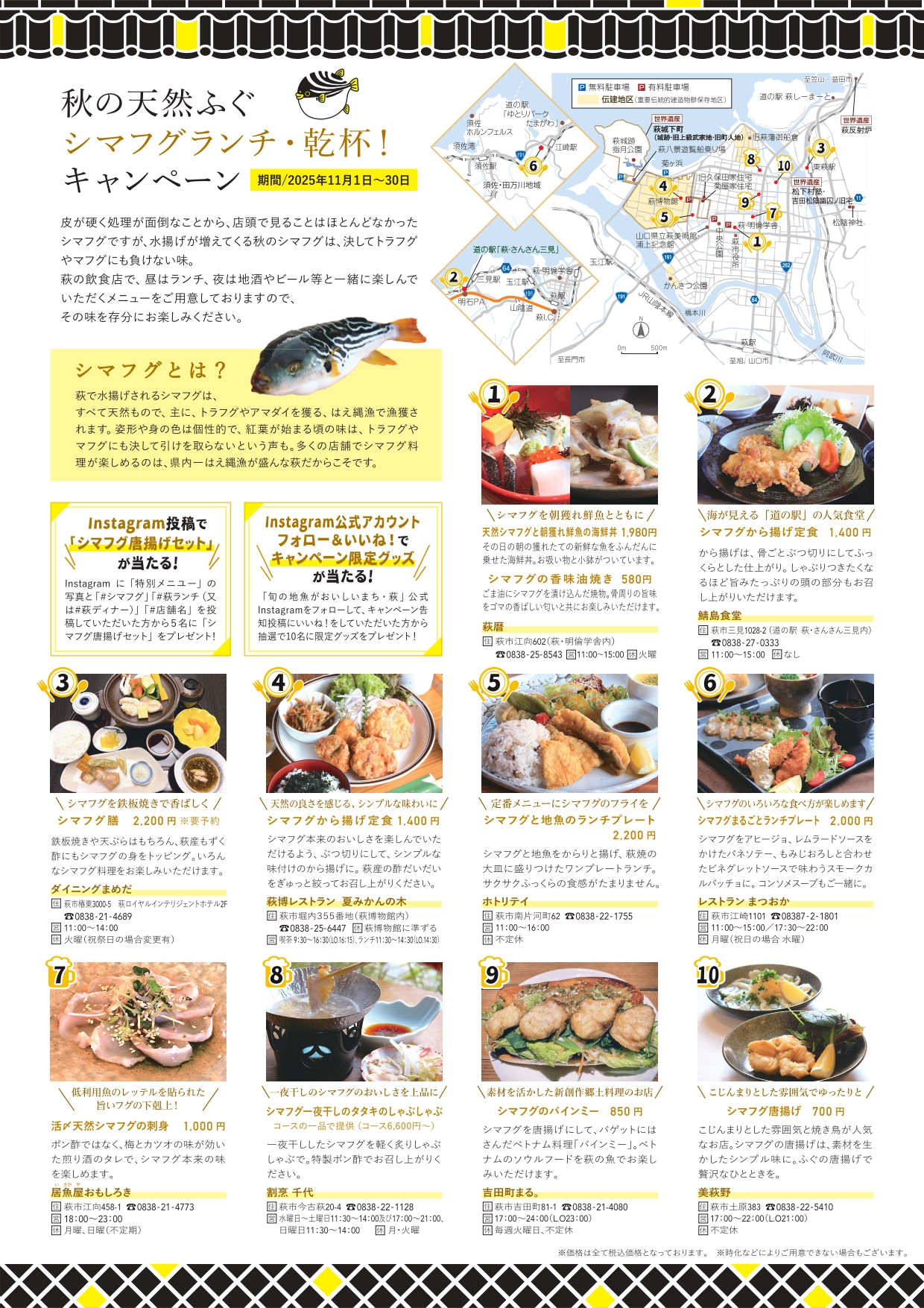 11月の1ヶ月間、萩市内の飲食店10店舗で期間限定の「シマフグ」特別メニューが味わえます♪