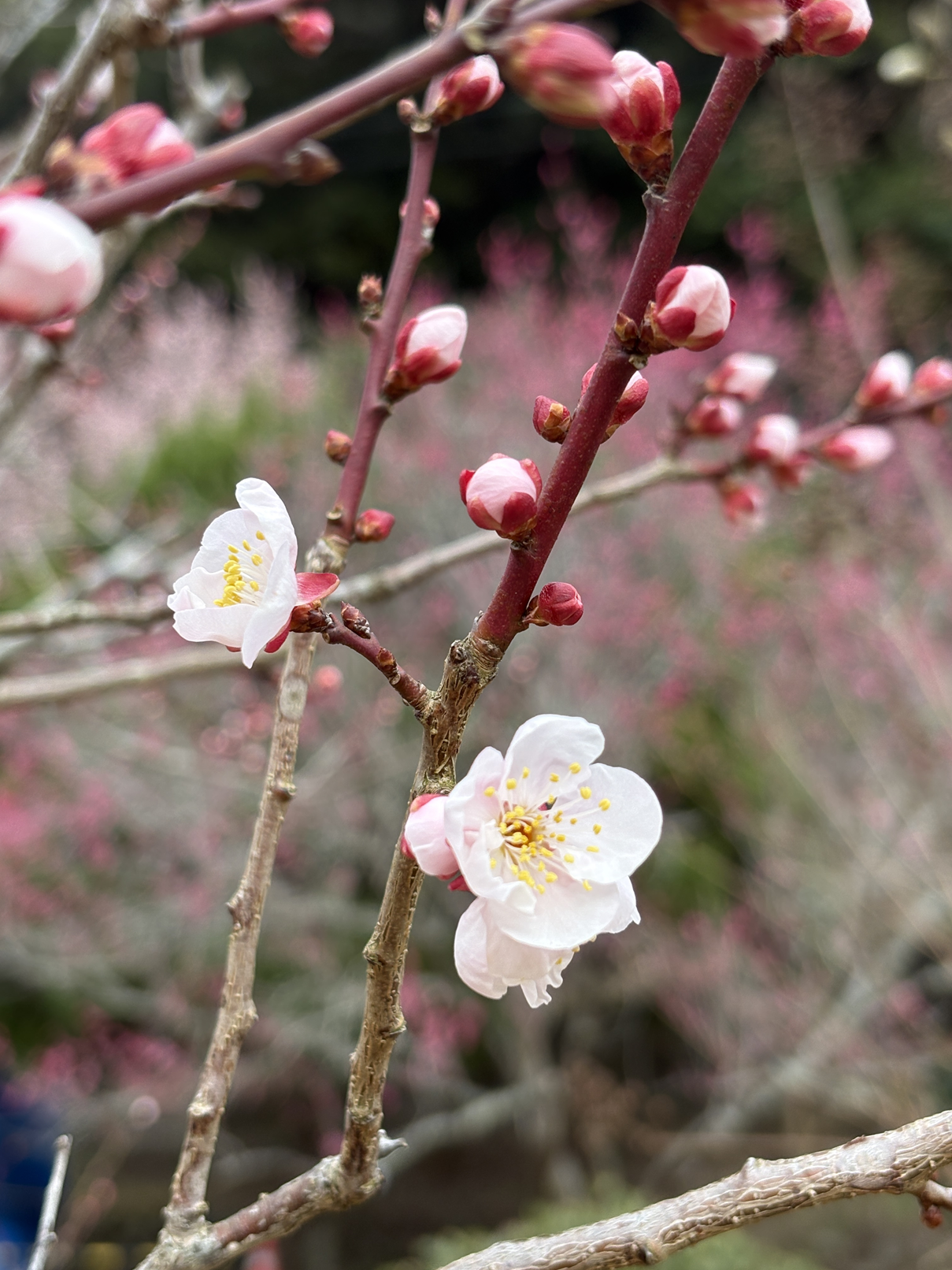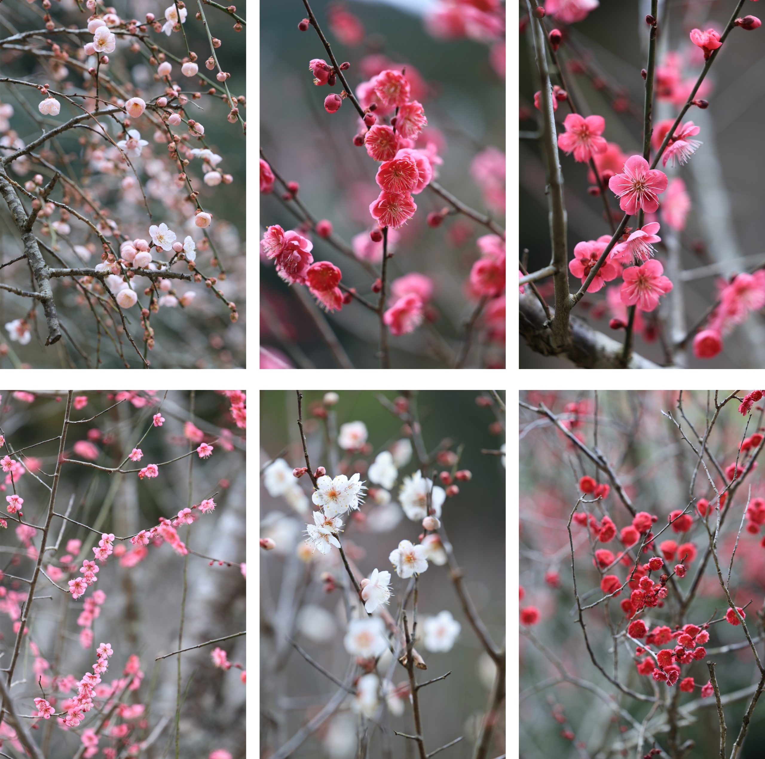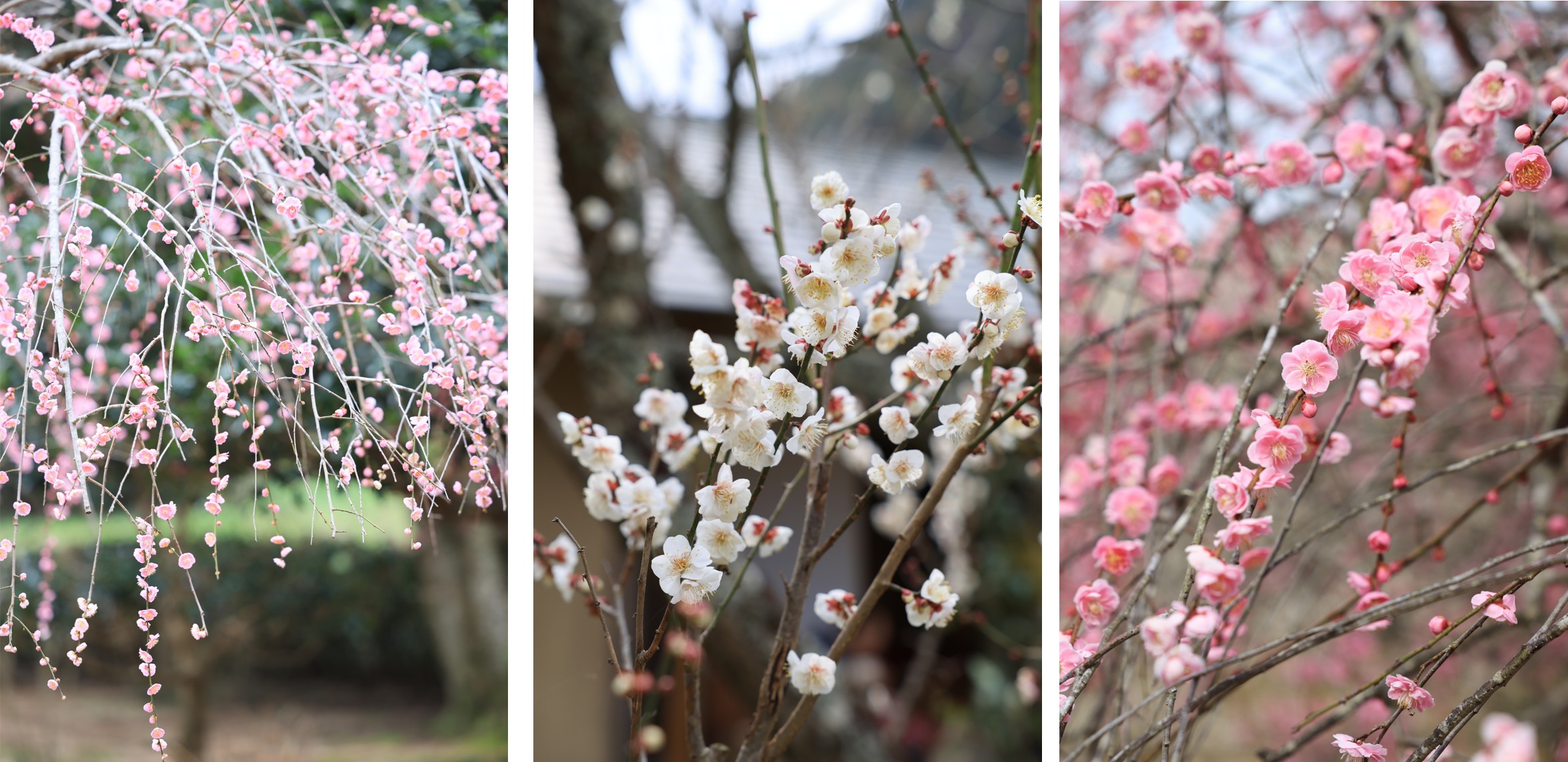 白梅や紅梅、ピンクなど、さまざまな種類の花が楽しめます。