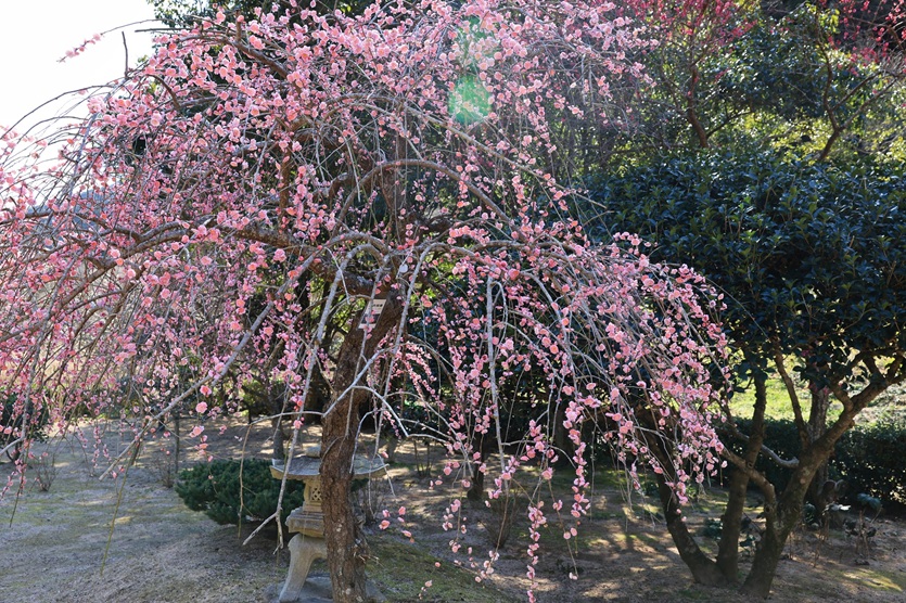 今年は、ピンクのしだれ梅の開花が早いようで、いまが見ごろです!