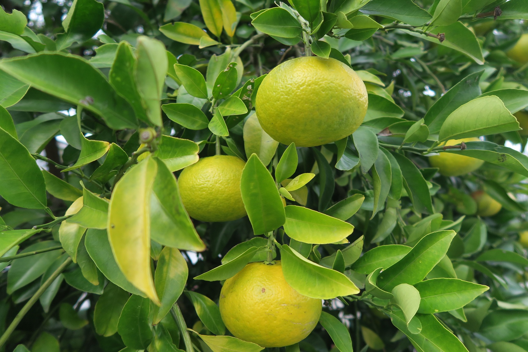 濃い緑色から黄色く色が変わり始め、実の色がグラデーションになっています。