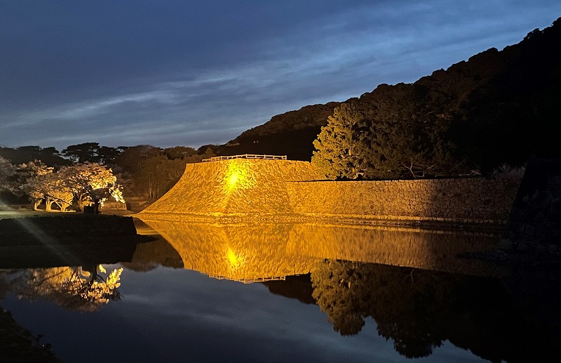 萩城跡指月公園では、天守跡の石垣がライトアップされています(通年)