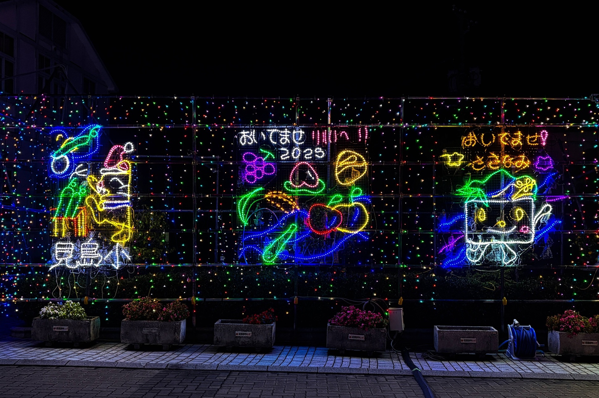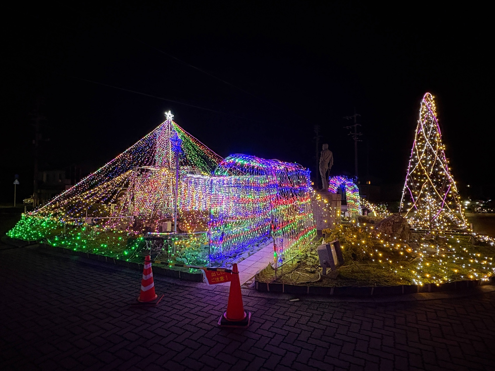 萩駅のイルミネーションと萩城跡のライトアップ、夜のドライブにぜひお楽しみください!!