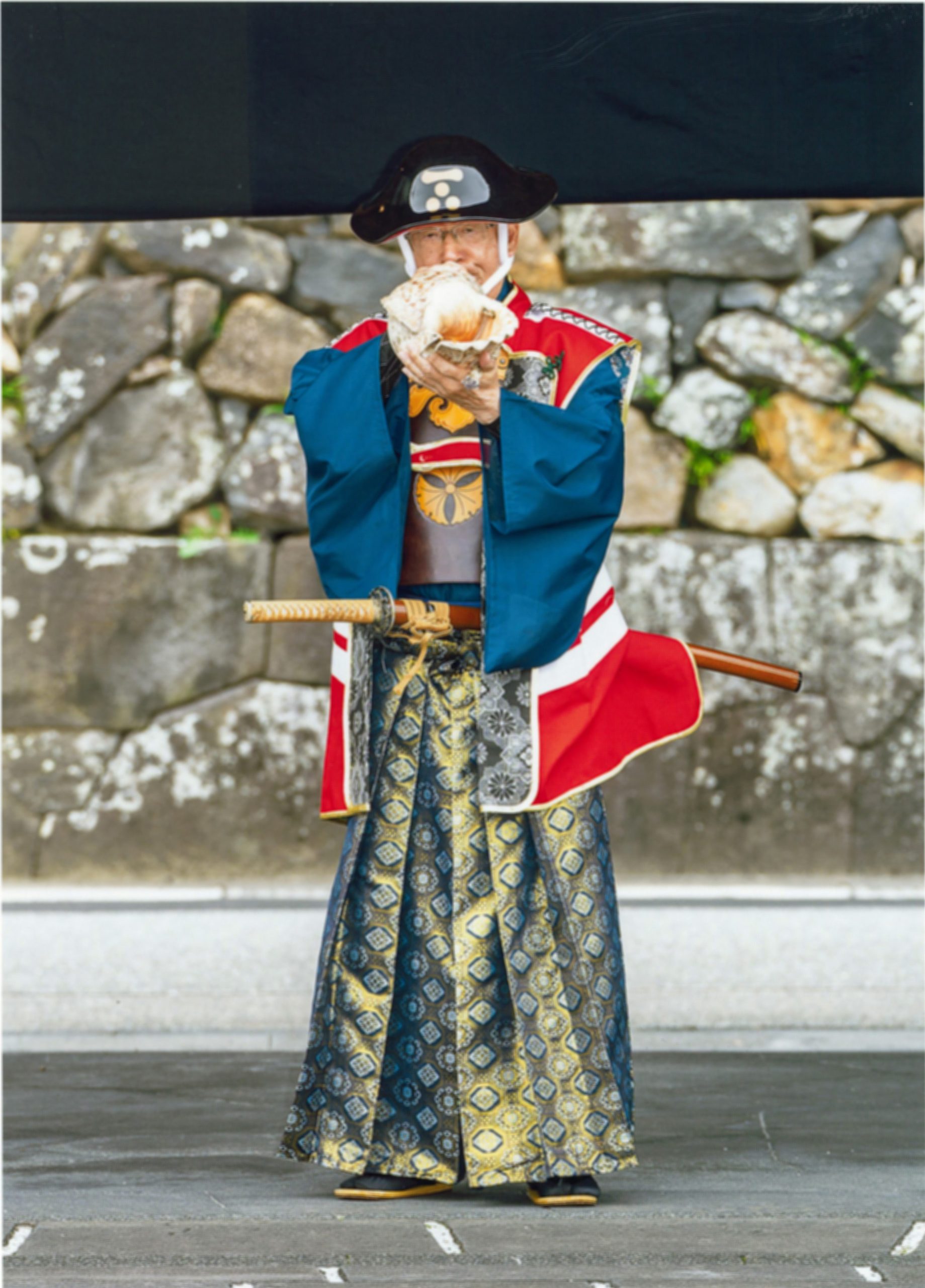 「着物ウィーク始動を告げる、ほら貝の響き」