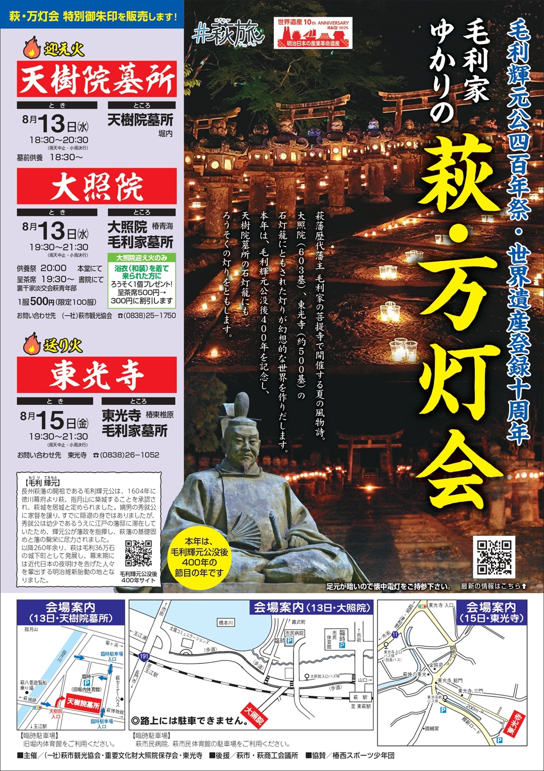 萩の夏の風物詩である「萩・万灯会」は、萩藩主毛利氏の菩提寺である大照院と東光寺がその舞台となります。