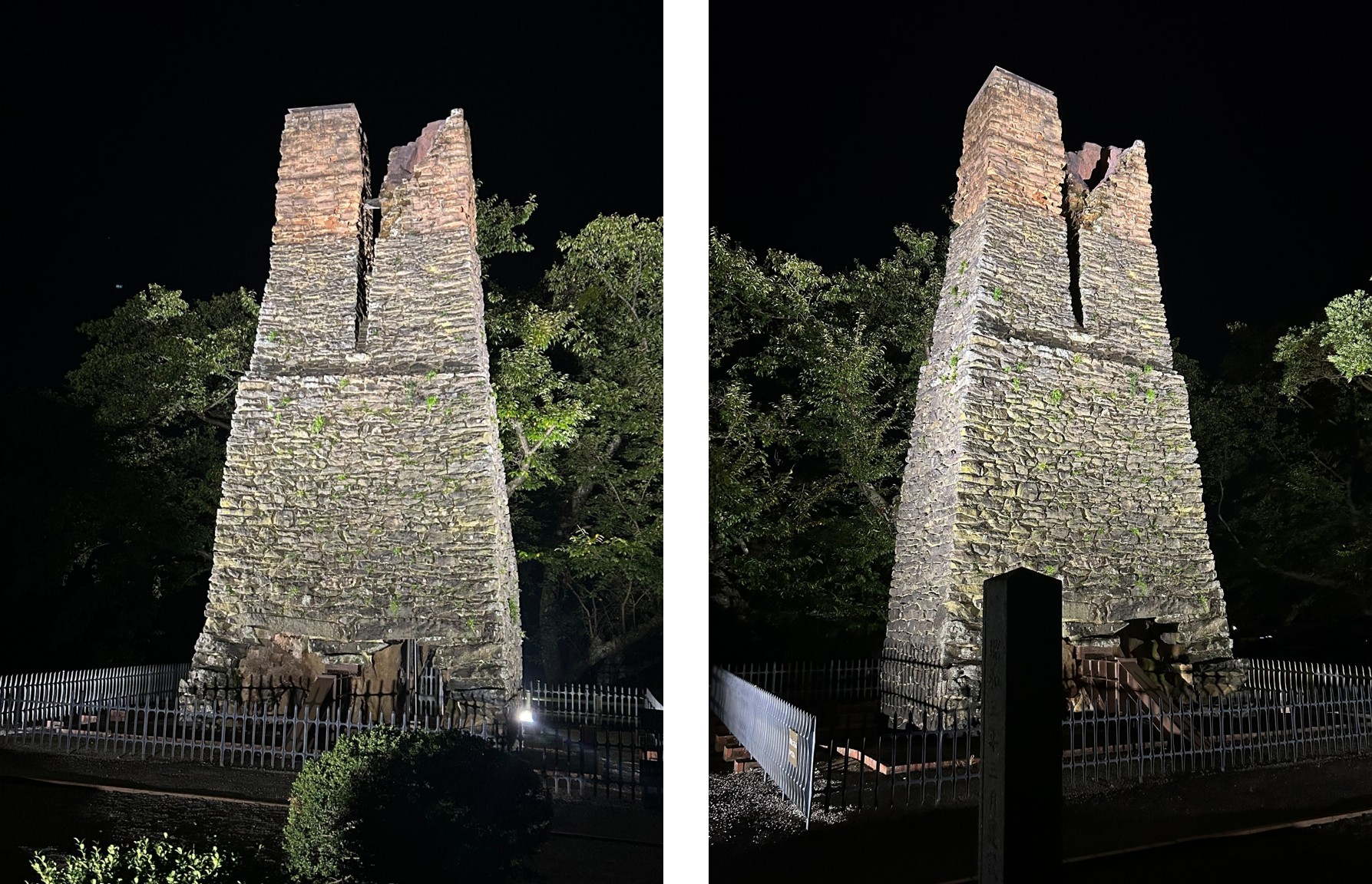 萩反射炉全体を幻想的に灯し、美しく浮かび上がらせます。