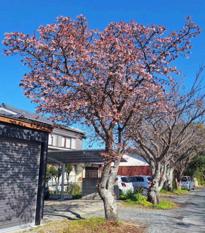 橋本川に沿った江向地区の市道そばに、1本のカンザクラがあります。