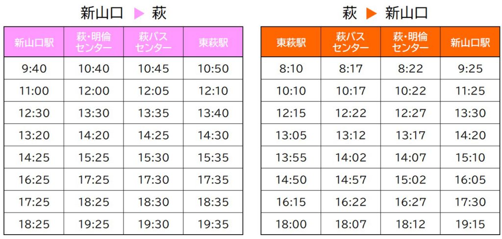 JR新山口駅からの直行バス『スーパーはぎ号』