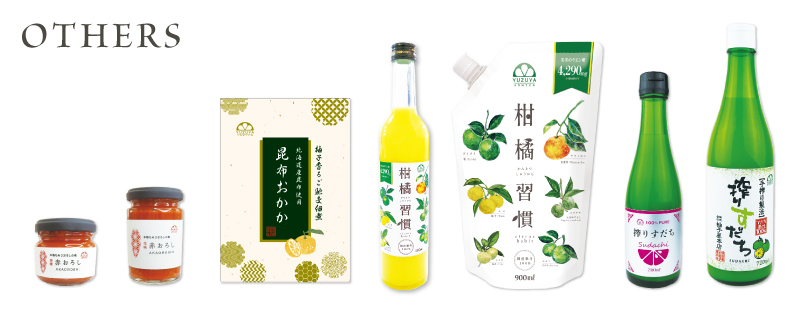 1978年創業のYUZUYAブランドとして、柚子・夏みかん・ゆずきち・だいだいなど、主に山口県産の柑橘だけを使い、無添加にこだわった安心・安全な製品づくりを続けています。素材本来の豊かな風味をいかしたジュースやジャム、ドレッシングなど、柑橘の魅力を余すことなく楽しめるアイテムを幅広く取り揃えています。