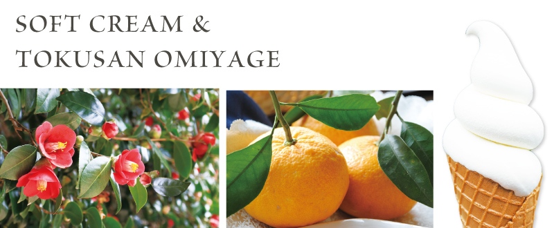 「白い夏みかんソフトクリーム」(500円~)もテイクアウトで味わえ、爽やかでありながらミルキーな優しい甘さとクリーミーな食感が笠山の自然の中で格別の癒しを提供します。