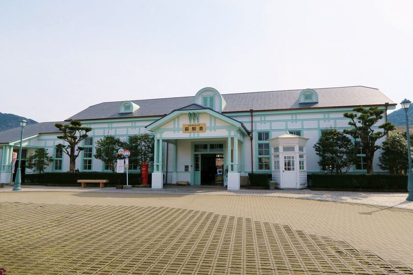 白く美しい外観が目を引くレトロな萩駅舎は、大正14年(1925)年に建てられたもので、平成10年に当時の姿に復元・補強されました。国登録有形文化財となっています。