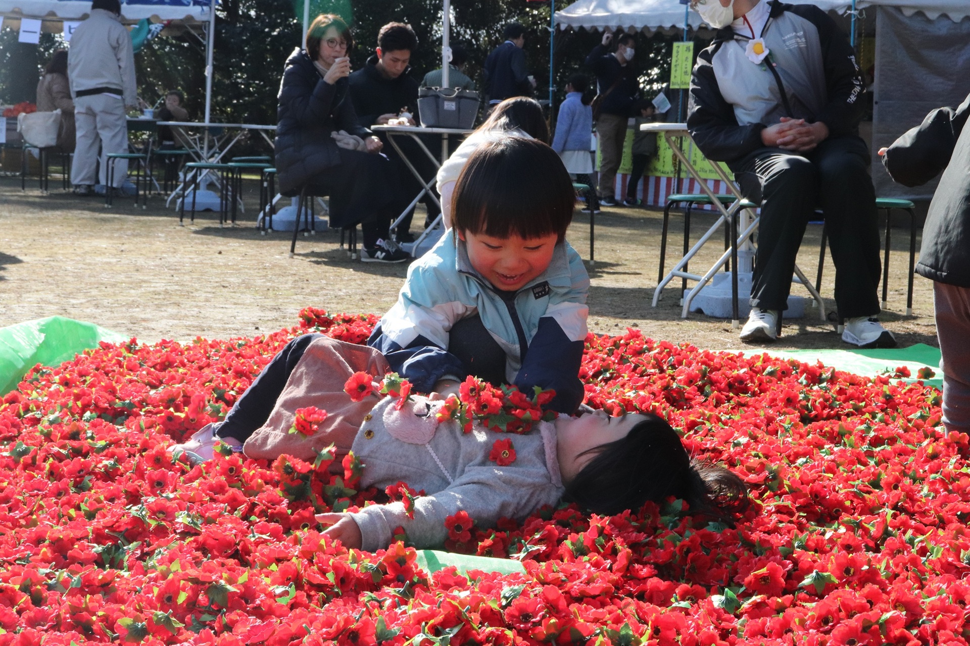 例年2月中旬~3月下旬頃に見ごろを迎え、背の高い椿の樹上に咲く色鮮やかな椿の花と、木から落ちた“落ち椿”が地面を赤く彩る光景をお楽しみいただけます。